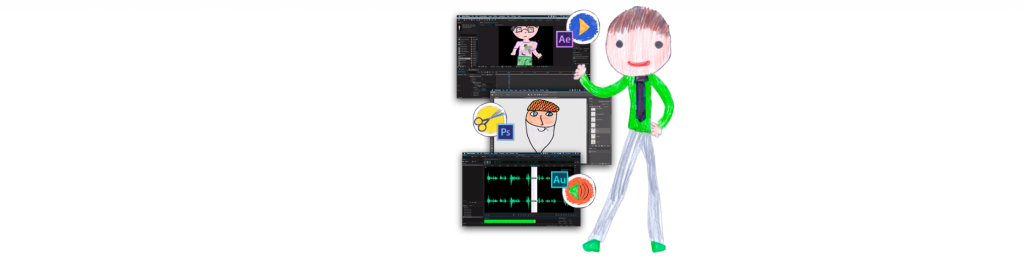 The program covers image treatment, scene composition, movement of visual elements, character animation, scene editing, audio integration, and finalization. To support this process, the course uses widely recognized industry tools such as Photoshop, After Effects, and Audition.