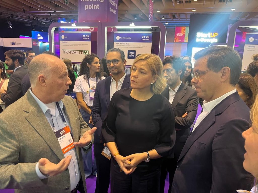 During the event, the booth welcomed a visit from the Executive Vice-President of the European Union, Henna Virkkunen, and the Portuguese Minister Gonçalo Saraiva Matias, accompanied by an RTP film crew.